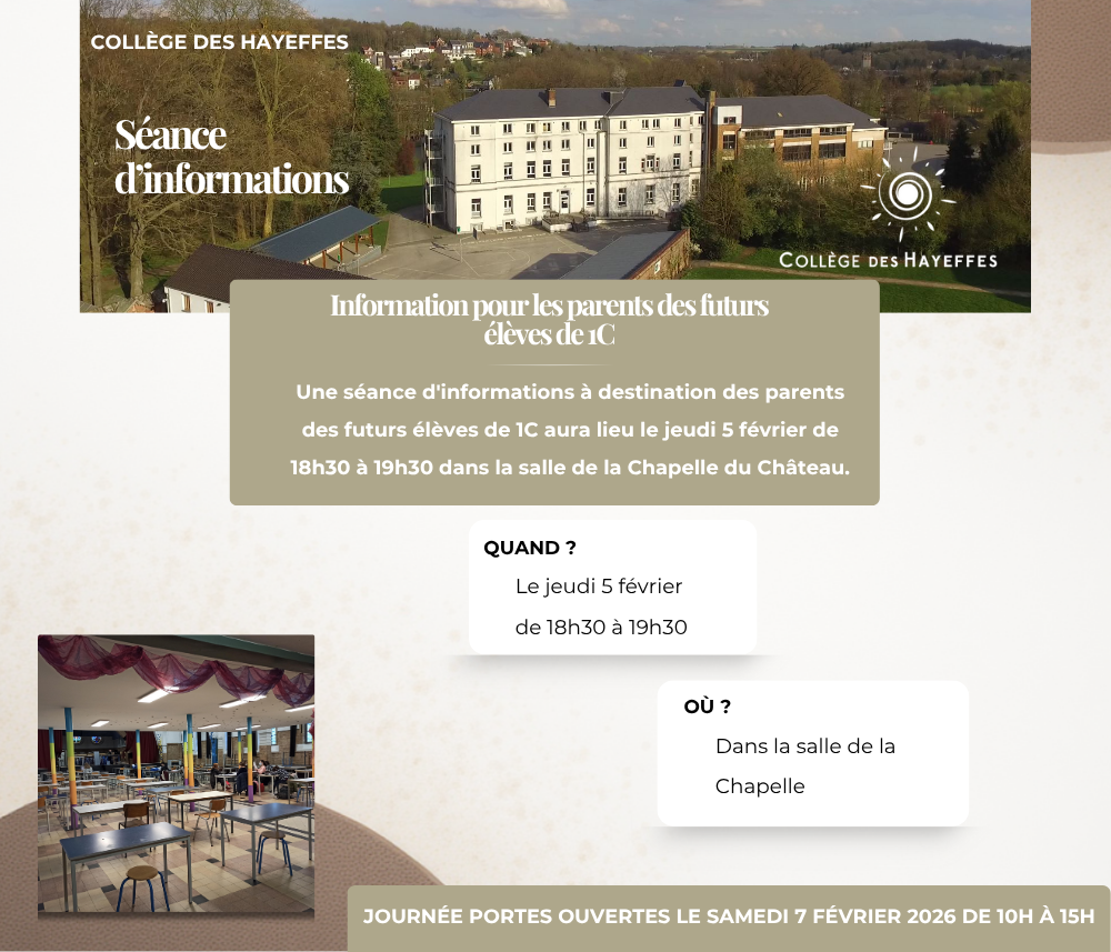 La période d’inscription en 1C pour l’année scolaire 2026-2027 se déroulera entre le lundi 2 février 08h00 et le vendredi 6 mars à 16h00. (Attention, l’école sera fermée lors du congé de Carnaval du vendredi 13 février 16h00 au lundi 2 mars 08h00.)